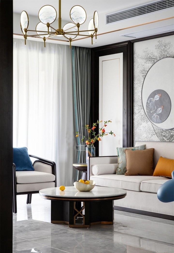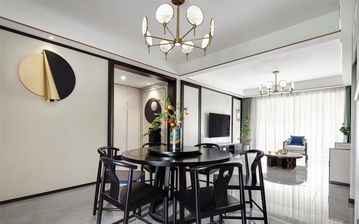设计理念:本案是三口之家,女业主是企业高管,男业主经营着一家公司,90后的他们还有一个刚出生不久的小宝贝。这是业主第二次装修,有一定家装经验的他们对新房装修有很多想法,因此他们想找一家靠谱的装修公司尽量完美的呈现他们对家的理解。本案经过与业主多轮讨论,最终确定实际的实施方案——从中式文化中汲取元素,蕴养一方团圆和睦的人文情怀,通过现代艺术中体现悠久的传统文化。